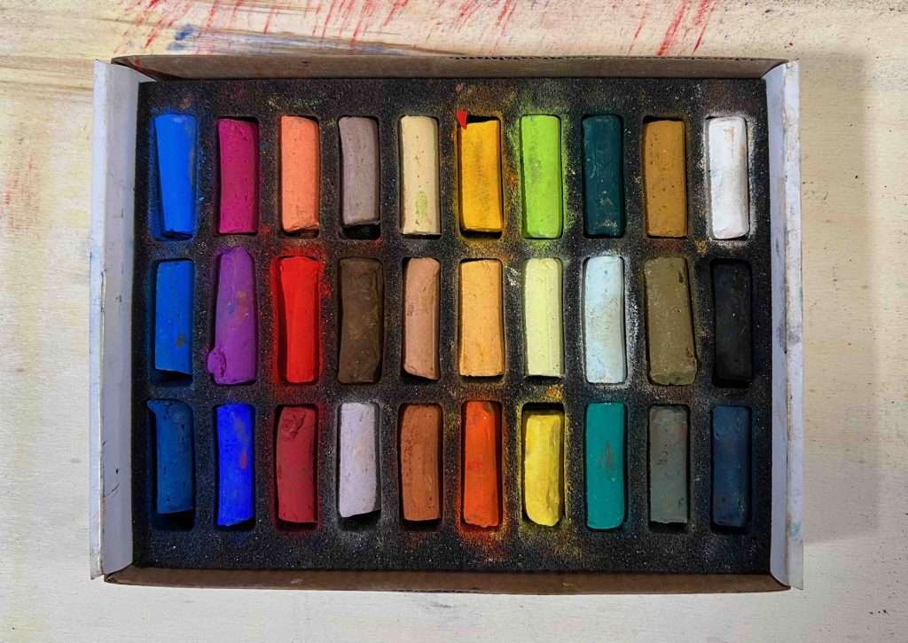 Visszatérve a cikkünk tárgyához, ezúttal a porpasztell krétát tesztelem. A Sennelier lágypasztell színsora 525 színárnyalatból áll. Számos kisebb-nagyobb készletet is kínálnak, cikkünk tárgya egy ilyen 30 db-os feles készlet.