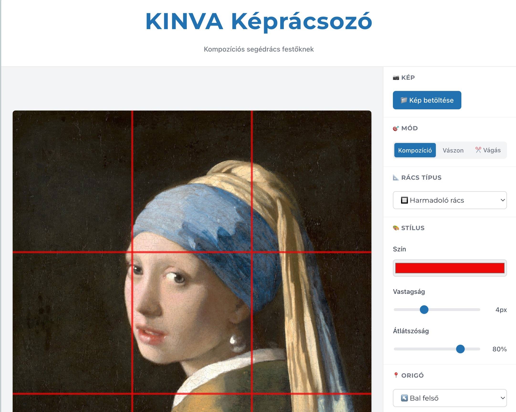 Kompozíciós segédrács festőknek Húzd ide a képet Húzd ide a képet, kattints a gombra, vagy használd a Ctrl+V billentyűtKINVA Képrácsozó